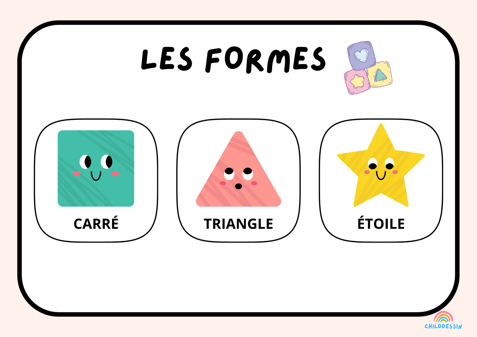 9 thèmes variés adaptés aux tout-petits : la météo, les couleurs, les formes, les fruits, les légumes, les transports, et plus encore.
