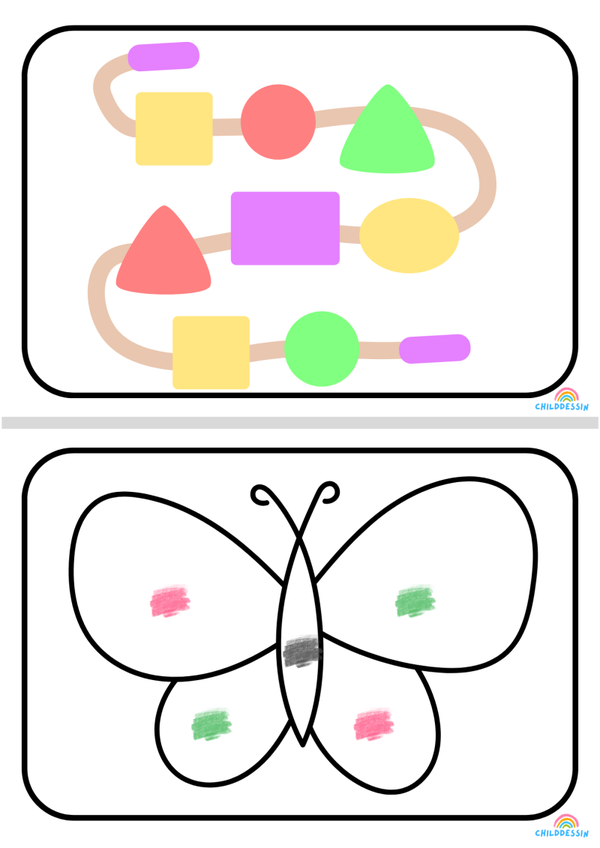 Grâce à des illustrations simples, colorées et attrayantes, ce livret de 14 pages accompagne l’enfant dans l’apprentissage des formes géométriques (cercle, carré, triangle, etc.) et des couleurs de base (rouge, bleu, jaune, vert...).